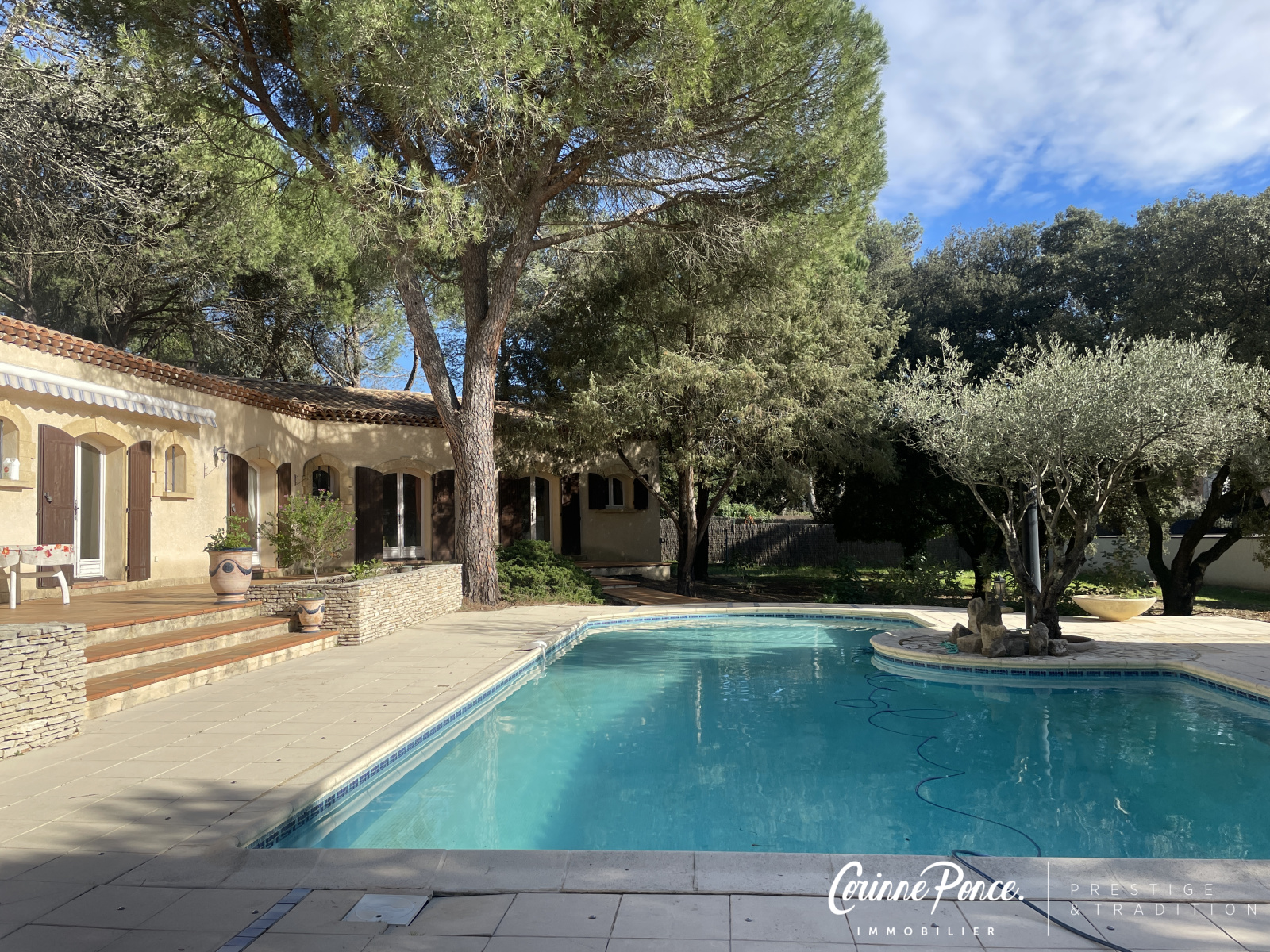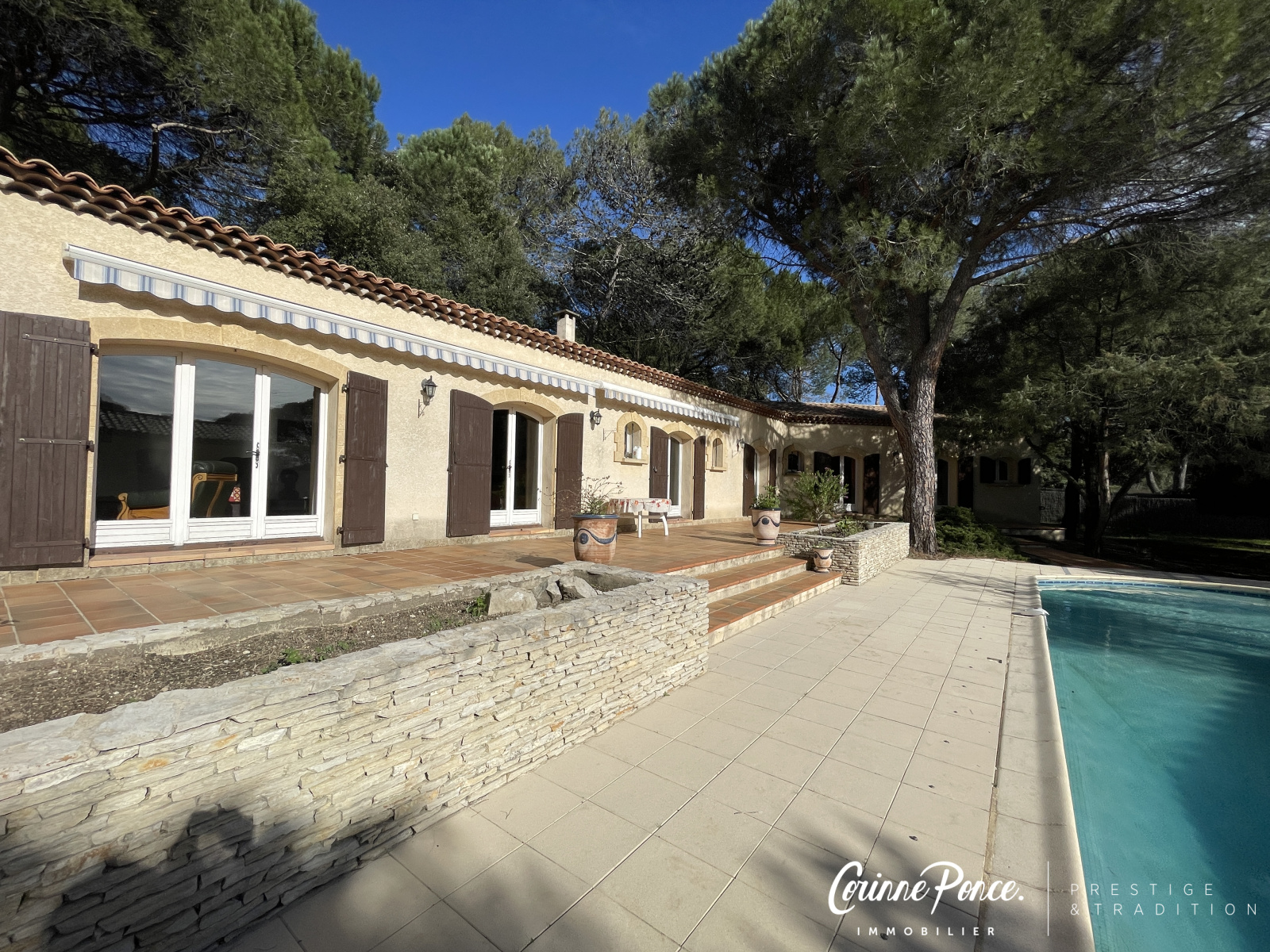 C'est à Langlade dans la Vaunage entre Nimes et Montpellier dans un environnement magnifique que se situe cette grande villa de 1991 plain pied. D'une SH de 160 m² sur un trés beau terrain de 2251 m² avec grande piscine, pool house et salon de musique extérieur. Vous apprécierez le séjour double et sa cheminée, la cuisine équipée indépendante et sa buanderie, les 3 chambres, le bureau, 2 salles d'eau et 2 WC.Dans cette villa plain pied exposéee sud, toutes les pièces s'articulent autour de la vaste terrasse et bénéficie de beaucoup de luminosité grâce à toutes les portes fenêtres en double vitrage. Le pool house sous préau fait office de cuisine d'été. Le salon de musique indépendant pourra être aménagé en grande chambre. Un garage avec fermeture automatisée. Climatisation. Cette maison vintage ne demande qu'à être rafraichie pour être magnifiée. Un quartier trés calme dans une pinéde lui donne un charme inconstestable.