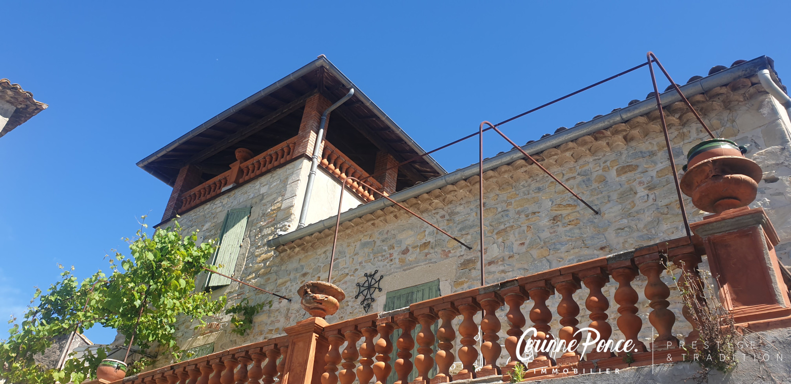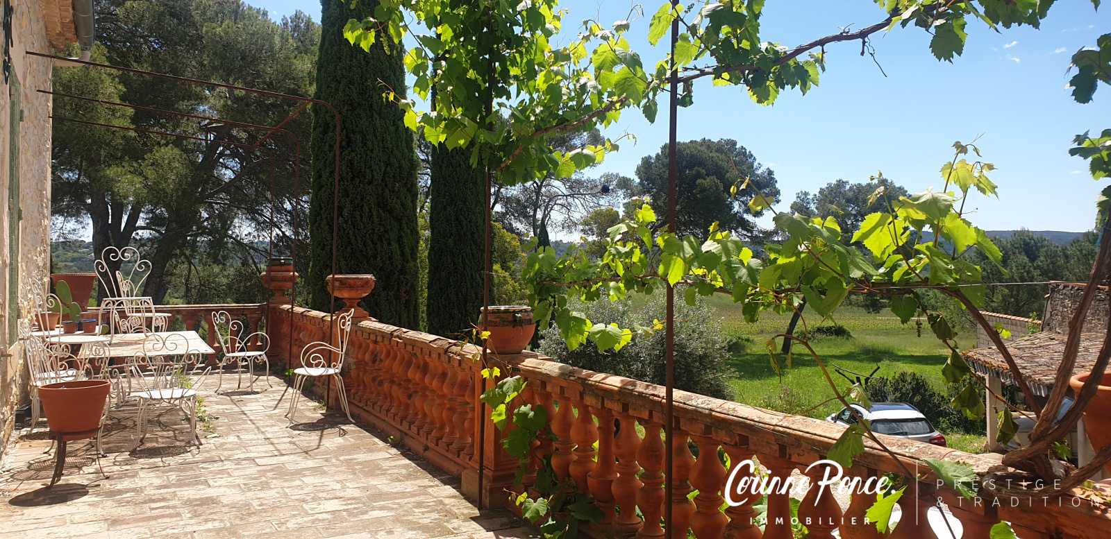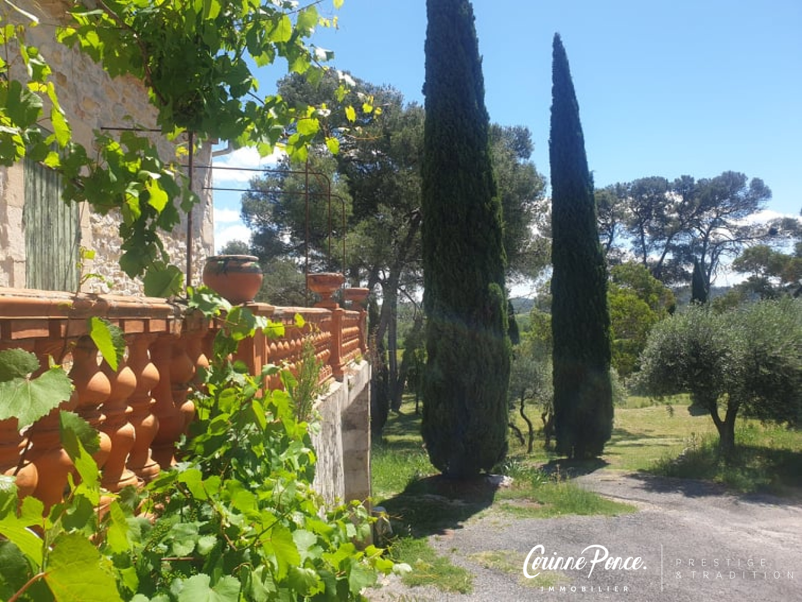 VENDU - Mas de caractère unique avec grand terrain au calme, superbe vue panoramique. Aigremont Gard. L'agence Corinne Ponce Prestige et Tradition vous propose au nord de Nîmes, dans village paisible, une propriété unique composée d'une maison d'habitation de 178m² ainsi que d'une grange de 300m² au sol, le tout proposé avec 8000 m² de terrain (possibilité d'acquérir plus de terres) de 6 pièces dont 3 chambres une magnifique pièce de vie avec cheminée, une cuisine séparée, deux salles de bain. 3 terrasses attenantes, un très grand espace atelier cave et deux garages (4 voitures) un jardin intime type patio complètent les prestations.